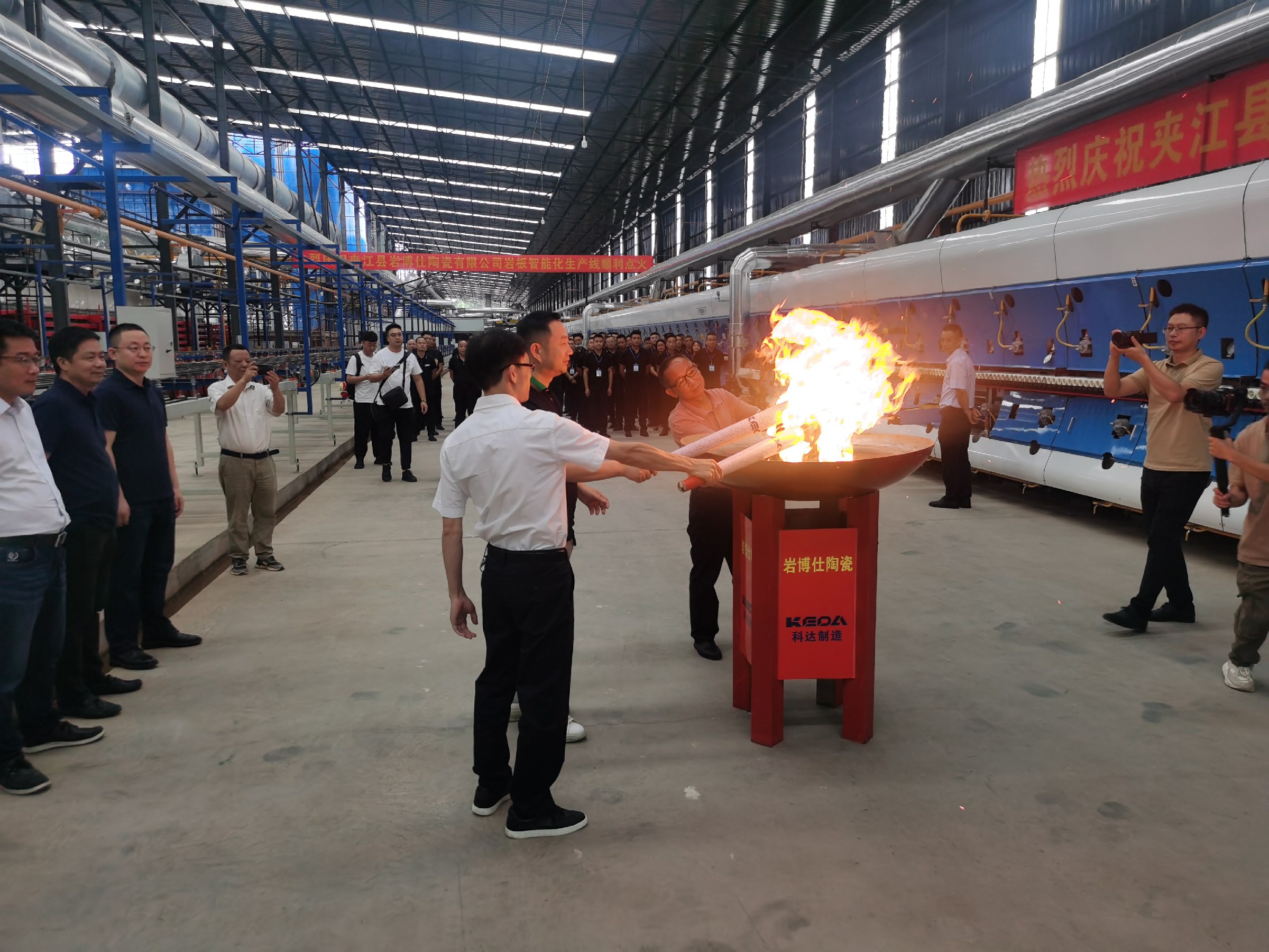 9月7日,農(nóng)歷白露節(jié)氣,暑氣漸退秋意濃。科達(dá)為夾江縣巖博仕陶瓷有限公司(以下簡(jiǎn)稱(chēng)“巖博仕”)建造的日產(chǎn)4萬(wàn)平方米高端智能巖板線(xiàn)順利點(diǎn)火,點(diǎn)燃了巖博仕產(chǎn)品轉(zhuǎn)型升級(jí)的希望之火。