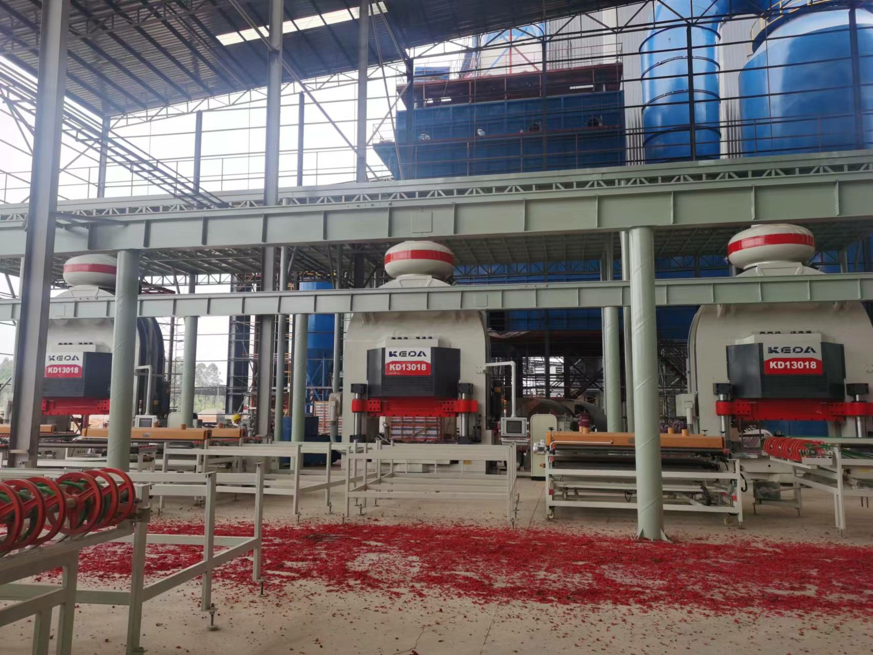 這條巖板線(xiàn)成為廣東協(xié)進(jìn)之外,科達(dá)在國(guó)內(nèi)建造的第二條、也是西部首條可3片900×1800mm進(jìn)窯的巖板線(xiàn),日產(chǎn)量更是高達(dá)38000㎡。該線(xiàn)還計(jì)劃生產(chǎn)600×1200mm、750×1500mm、800×1600mm、800×2000mm多種規(guī)格大板巖板,750×1500mm規(guī)格日產(chǎn)量可達(dá)32000㎡。