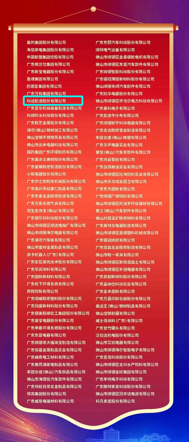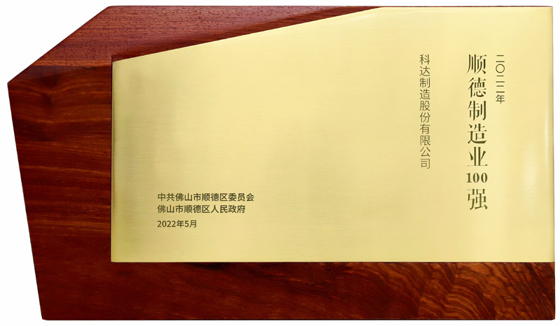 9月25日,順德高規(guī)格舉辦“深耕順德 共享未來(lái)”順德區(qū)制造業(yè)百?gòu)?qiáng)發(fā)布暨重大項(xiàng)目簽約活動(dòng)?;顒?dòng)上,順德首次發(fā)布“順德制造業(yè)100強(qiáng)”榜單,榜單按企業(yè)2021年?duì)I收規(guī)模前100名進(jìn)行編制,科達(dá)制造名列第九位。