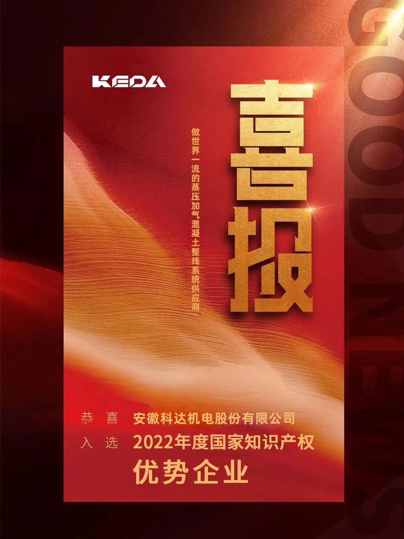 近日,國家知識產(chǎn)權(quán)局公示了2022年度國家知識產(chǎn)權(quán)優(yōu)勢企業(yè)和示范企業(yè)評定結(jié)果,安徽科達機電股份有限公司入選國家知識產(chǎn)權(quán)優(yōu)勢企業(yè)。