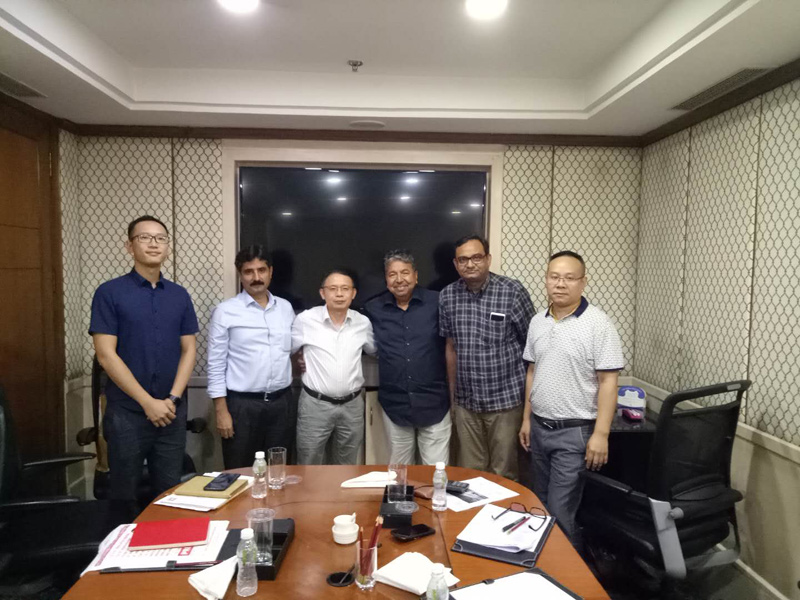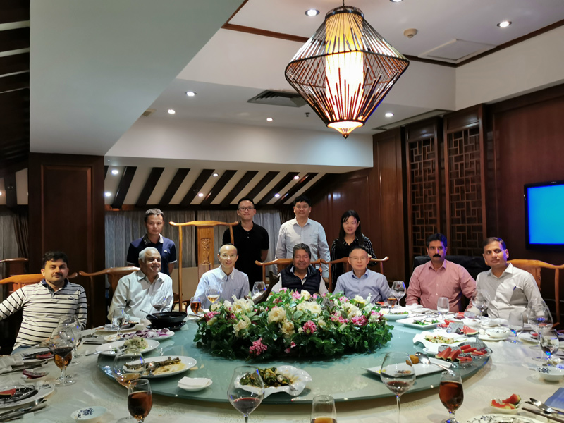 ▲Kajaria集團董事長兼CEO Mr.Ashok Kajaria(中)與科達制造董事總經理、恒力泰機械總經理楊學先(左三),德力泰科技總經理管火金(右三)等合影