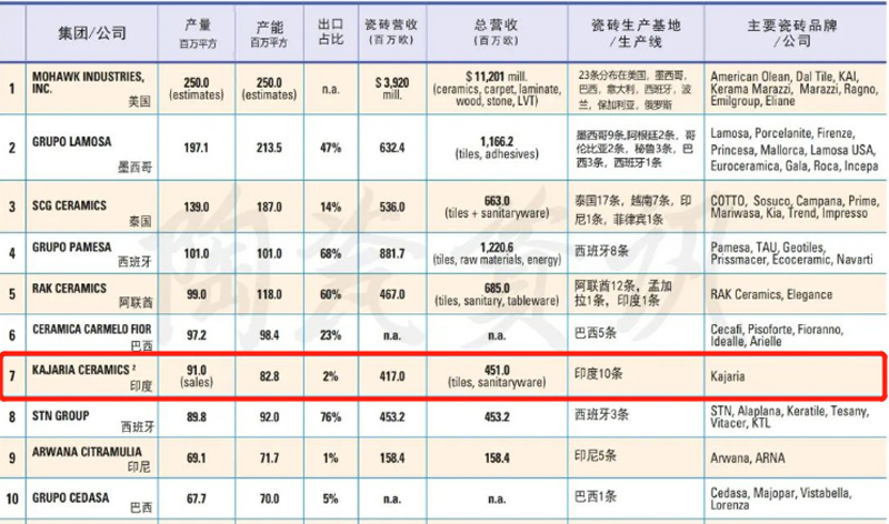 世界 Top7 陶瓷巨頭Kajaria(印度第一品牌)