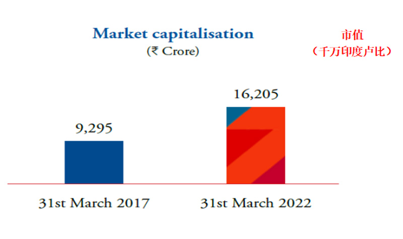 ▲Kajaria集團2017年3月至2022年3月的市值數據
