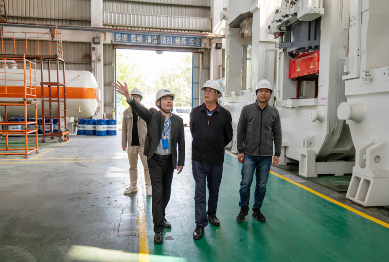 彭藝年秘書長一行先后參觀了科達數(shù)字化展廳、科達液壓車間數(shù)字化生產(chǎn)線以及成型機械生產(chǎn)裝配車間,呂總介紹了科達的產(chǎn)品多元化布局、市場開拓及數(shù)字化轉(zhuǎn)型升級等情況。彭秘書長對科達的制造實力和前瞻性布局表示肯定,他指出,新興縣作為不銹鋼餐具生產(chǎn)基地,擁有上下游配套生產(chǎn)企業(yè)110多家,年產(chǎn)值近100億元,期待科達能與當(dāng)?shù)仄髽I(yè)開展深入合作,推動不銹鋼餐具生產(chǎn)企業(yè)向智造升級。