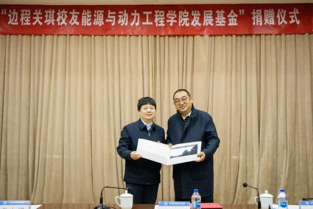 ▲北航副校長(zhǎng)劉樹春代表學(xué)校為邊程校友頒發(fā)捐贈(zèng)證書
