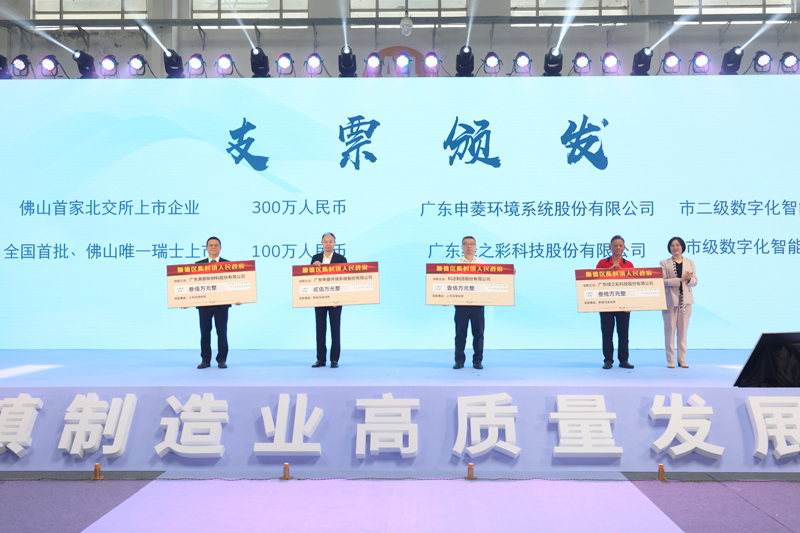 圍繞扶持政策,大會還以最高禮遇致敬企業(yè)家,為科達制造等多家企業(yè)頒發(fā)了扶持資金,并授予30家企業(yè)突出貢獻獎、高質(zhì)量發(fā)展獎,切實給企業(yè)家最大的鼓勵與溫暖。其中,科達制造獲頒“陳村鎮(zhèn)制造業(yè)突出貢獻獎”,同時憑借2022年實現(xiàn)首批掛牌瑞交所上市的亮眼成績,科達制造獲得陳村鎮(zhèn)政府“上市倍增扶持”100萬元獎勵。