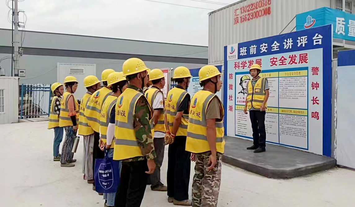 ▲管理團(tuán)隊(duì)在施工現(xiàn)場(chǎng)開展安全學(xué)習(xí)