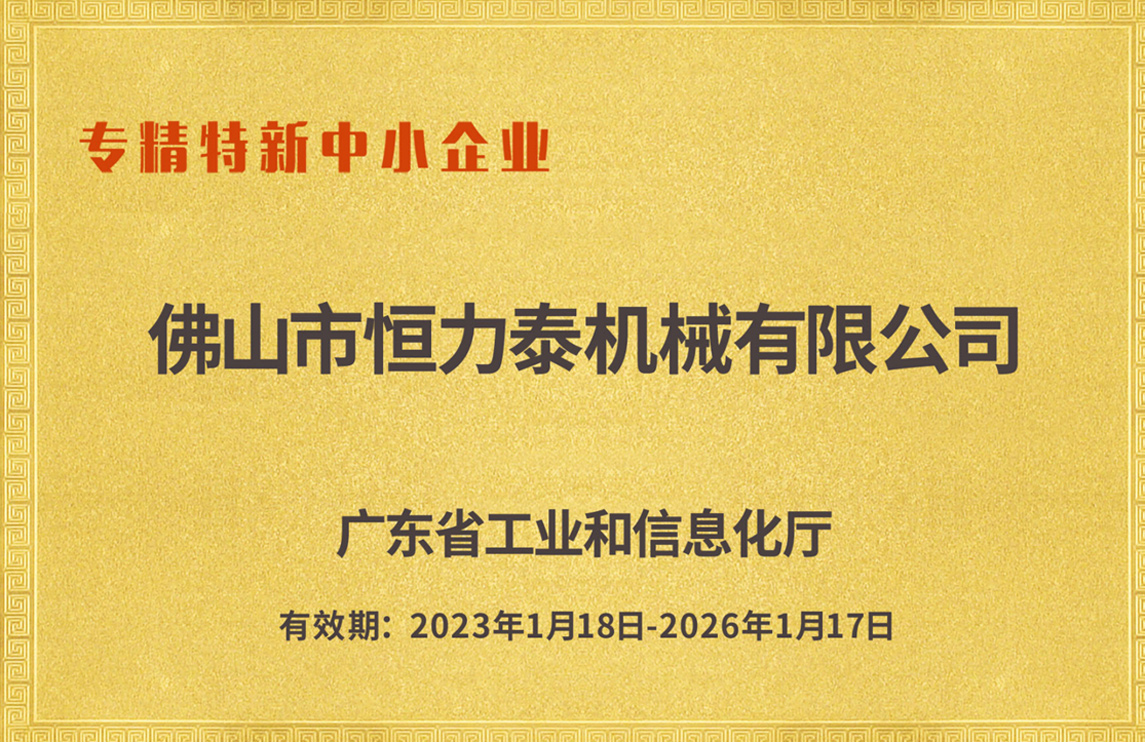 ▲恒力泰廣東省專精特新中小企業(yè)牌匾