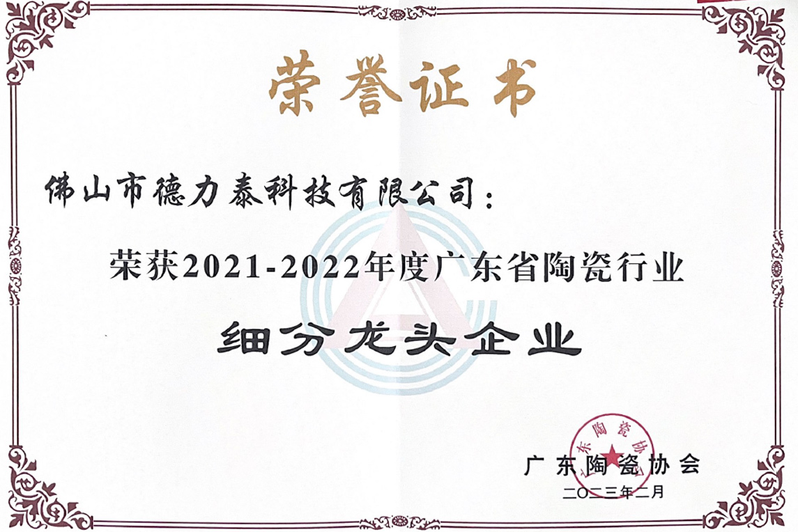 ▲德力泰榮獲廣東省陶瓷行業(yè)“細(xì)分龍頭企業(yè)”稱號