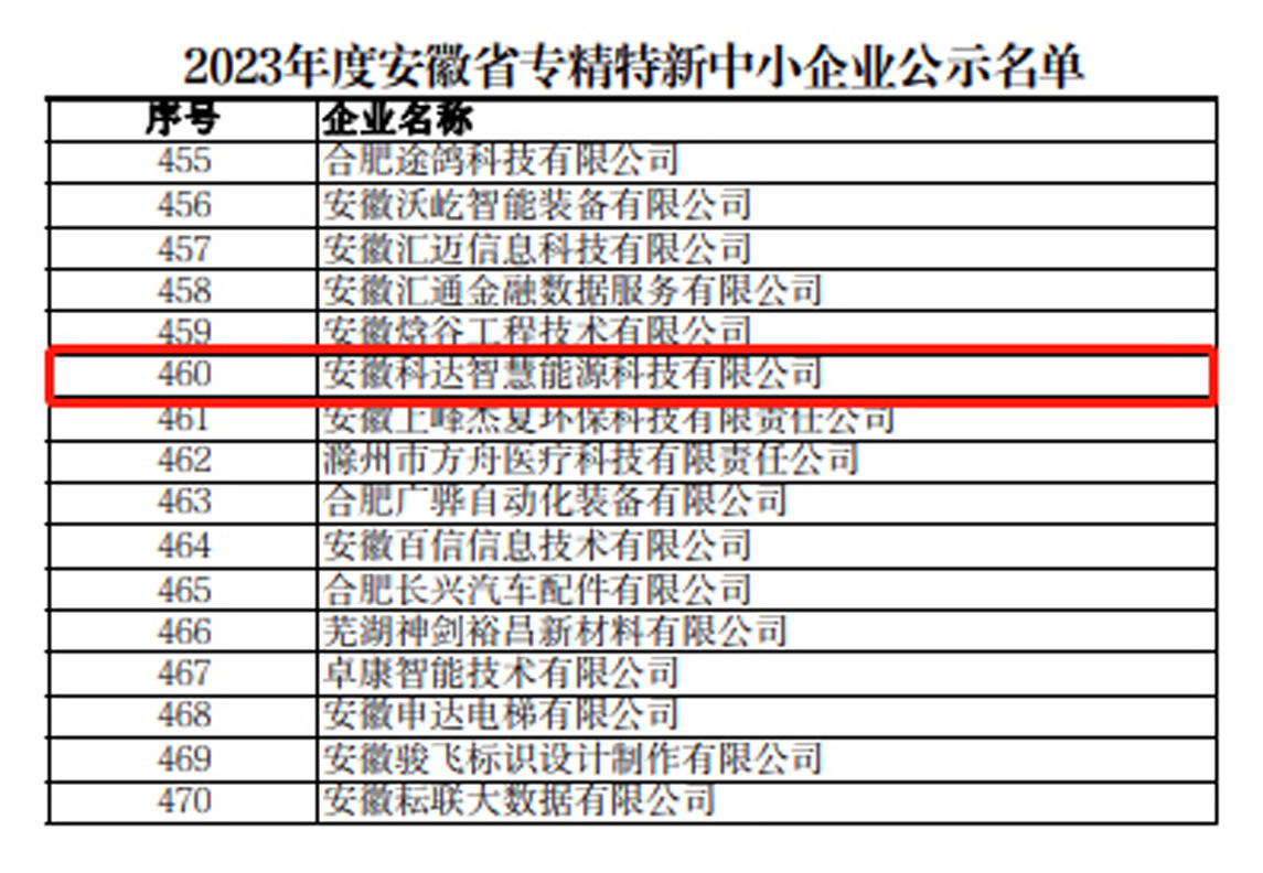 ▲安徽省經(jīng)濟(jì)和信息化廳關(guān)于2023年專精特新中小企業(yè)名單的公示