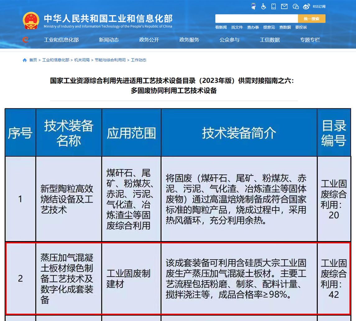 為貫徹落實(shí)《固體廢物污染環(huán)境防治法》,加快工業(yè)資源綜合利用先進(jìn)適用工藝技術(shù)設(shè)備推廣應(yīng)用,持續(xù)提高資源利用效率,工業(yè)和信息化部、國(guó)家發(fā)展和改革委員會(huì)、科學(xué)技術(shù)部、生態(tài)環(huán)境部發(fā)布了《國(guó)家工業(yè)資源綜合利用先進(jìn)適用工藝技術(shù)設(shè)備目錄(2023年版)》(以下簡(jiǎn)稱“《目錄》”),涵蓋工業(yè)固廢減量化、工業(yè)固廢綜合利用、再生資源回收利用、再制造等重點(diǎn)領(lǐng)域。安徽科達(dá)機(jī)電股份有限公司提供的“蒸壓加氣混凝土板材綠色制備工藝技術(shù)及數(shù)字化成套裝備”成功入選該目錄。