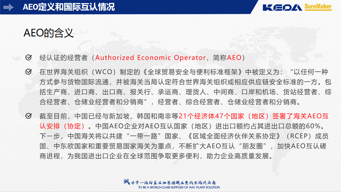 此次海關(guān)AEO高級(jí)認(rèn)證的通過,是海關(guān)對(duì)安徽科達(dá)機(jī)電內(nèi)控流程和出口合規(guī)等各項(xiàng)工作的認(rèn)可,公司將以此為新的契機(jī),腳踏實(shí)地,繼續(xù)強(qiáng)化內(nèi)部管理,充分利用AEO在全球通關(guān)的便利條件,以更高的通關(guān)效率、更低的運(yùn)營(yíng)成本、更完善的服務(wù),深耕國(guó)際化市場(chǎng)。