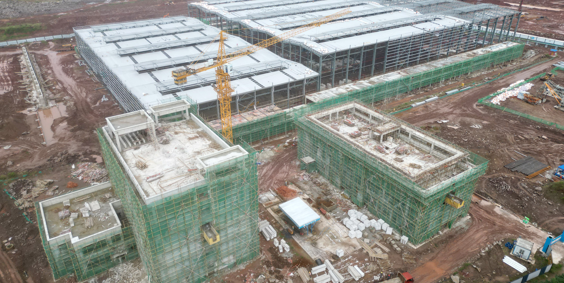 ▲負(fù)極車間施工現(xiàn)場(chǎng)