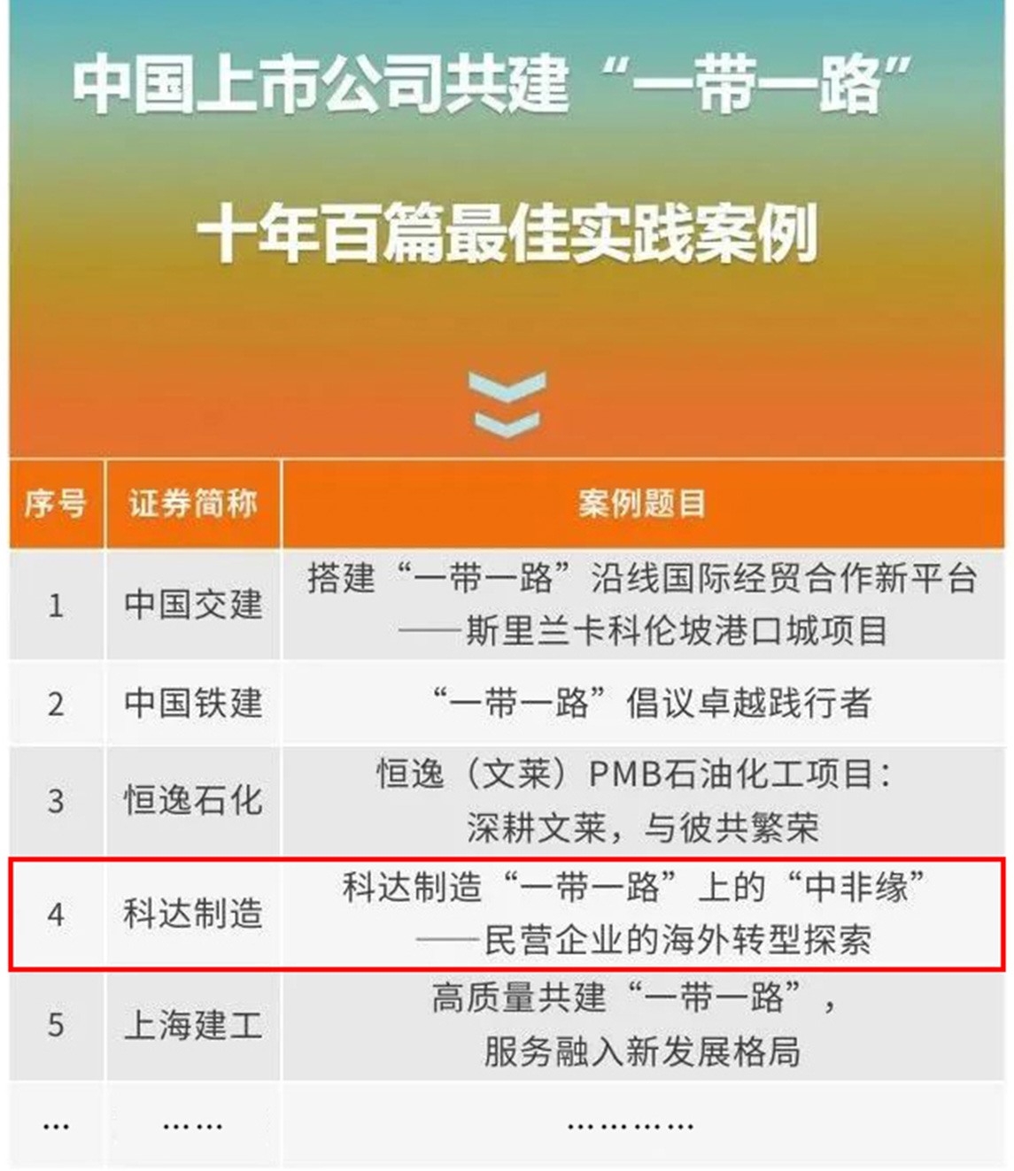 ▲科達(dá)制造入選《“一帶一路”十年百篇最佳實踐案例》