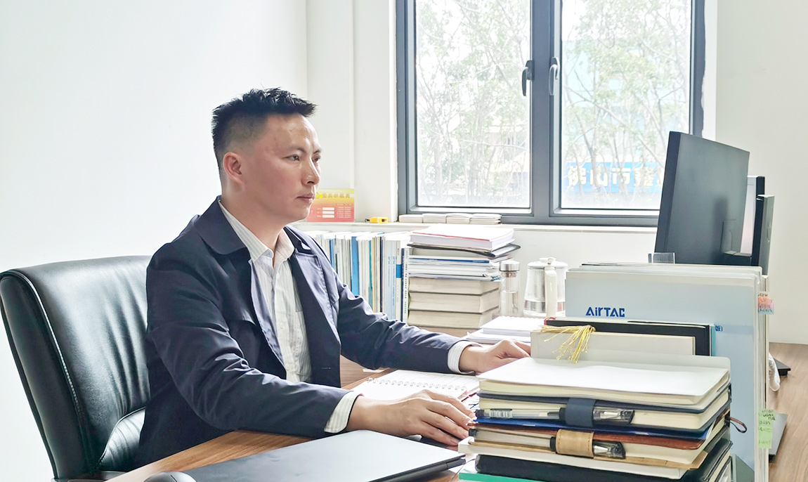 ▲曹飛正在整理陶瓷液壓機開發(fā)研究數(shù)據(jù)