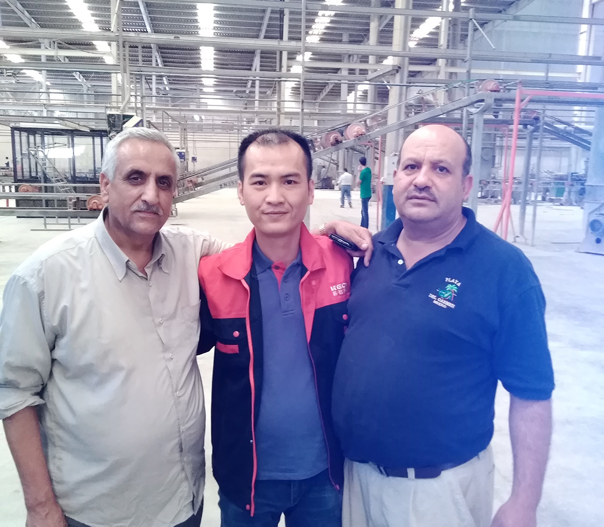 敘利亞一客戶2013年購買了科達陶機兩條拋光線和兩條干磨線,設(shè)備到達客戶工廠以后,由于時局動蕩,公司無法派出服務(wù)人員前去安裝調(diào)試,設(shè)備就一直閑置了下來。面對當時戰(zhàn)火紛飛的敘利亞,陳日富毫不畏懼,主動前往。在到達敘利亞的當晚,他就聽到重機槍的聲音,一夜無眠。第二天在前往客戶工廠的路上,經(jīng)過無人區(qū),看到了陣亡的士兵尸體被簡單地掩埋在路邊沙土里。盡管面臨這樣的危險環(huán)境,他仍然在敘利亞客戶的大力配合下,完成了兩條拋光線和兩條干磨線的安裝調(diào)試工作。原本一個月的工作量,他只用了10多天就完成了,并順利通過客戶驗收并平安回國。