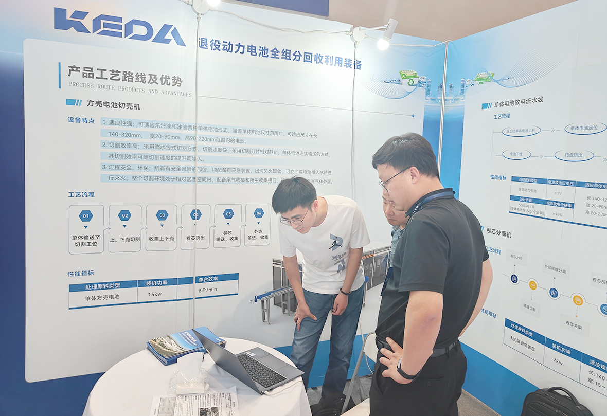 與此同時(shí),安徽科達(dá)機(jī)電攜最新研發(fā)的退役動力電池全組分回收利用裝備也亮相了本屆中國國際電池技術(shù)展,吸引了一眾客商前來咨詢了解。