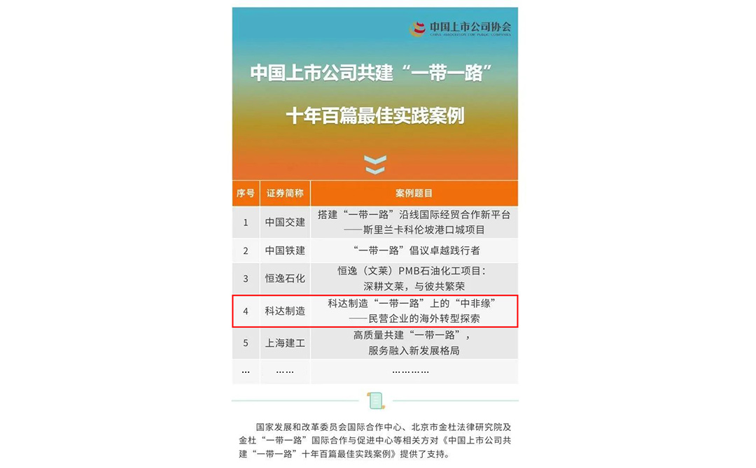 ▲科達(dá)制造攜手森大集團(tuán)入選《“一帶一路”十年百佳案例》