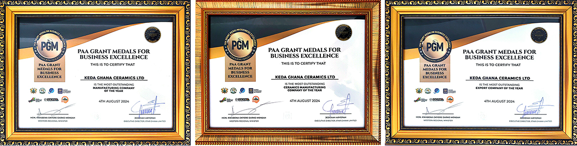 在近日舉行的加納西部省商業(yè)頒獎典禮(Paa Grant Medals for Business Excellence)上,特福加納陶瓷公司榮獲“2024年度最佳制造業(yè)企業(yè)獎”、“2024年度最佳陶瓷制造業(yè)企業(yè)獎”和“2024年度出口成就獎”三項大獎。該獎項旨在表彰在報告年度內(nèi)對當(dāng)?shù)亟?jīng)濟(jì)產(chǎn)生積極影響的企業(yè)。