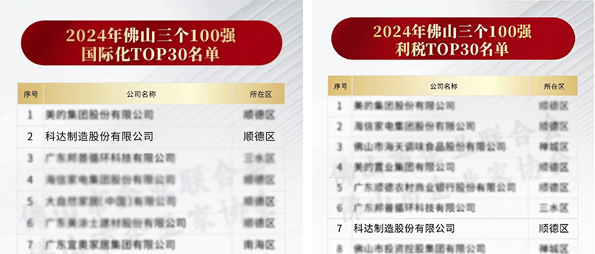 科達(dá)制造憑借車越的綜合實力再度入圍佛山企業(yè)“利稅TOP30”與“國際化TOP30”榮譽(yù)榜單,分列“利稅TOP30”榜第7名及“國際化TOP30”榜第2名。值得一提的是,相較去年科達(dá)制造在榜單上的排名區(qū)逐年攀升,且在“國際化”榜單中榮登第2位。
