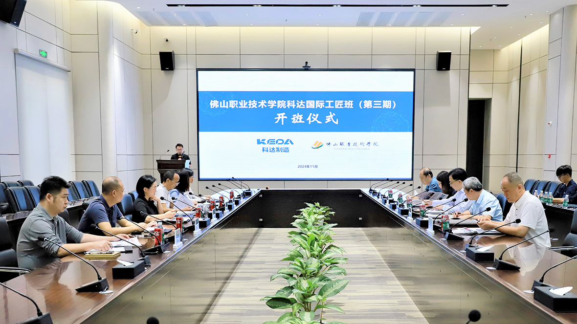 佛職院副校長歐陽永中在儀式上發(fā)言。他表示,非常榮幸與科達(dá)開辦第三期國際工匠班,佛職院一直致力于為社會培養(yǎng)高素質(zhì)的技術(shù)技能型人才,而“工匠班”項目正是佛職院在職業(yè)教育方面的創(chuàng)新之舉,通過借鑒德國“雙元制”培養(yǎng)模式,結(jié)合本土化實踐經(jīng)驗,學(xué)校和科達(dá)共同將學(xué)生的實習(xí)內(nèi)容模塊化、體系化、一體化,形成可復(fù)制、可迭代、可示范推廣的人才培養(yǎng)新范式,推動了專業(yè)、學(xué)科課程、實訓(xùn)隊伍、雙師型教師隊伍等方面建設(shè),服務(wù)校企深度合作。