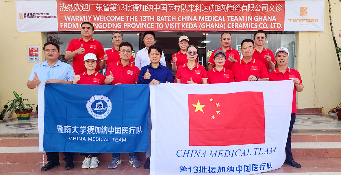 近日,廣東省第13批援加納中國醫(yī)療隊受邀來到特福(加納)陶瓷廠(以下簡稱“特福加納”)進行義診。為進一步促進中加雙方的理解與合作,特福加納同步邀請了醫(yī)療團隊到公司進行參觀交流。