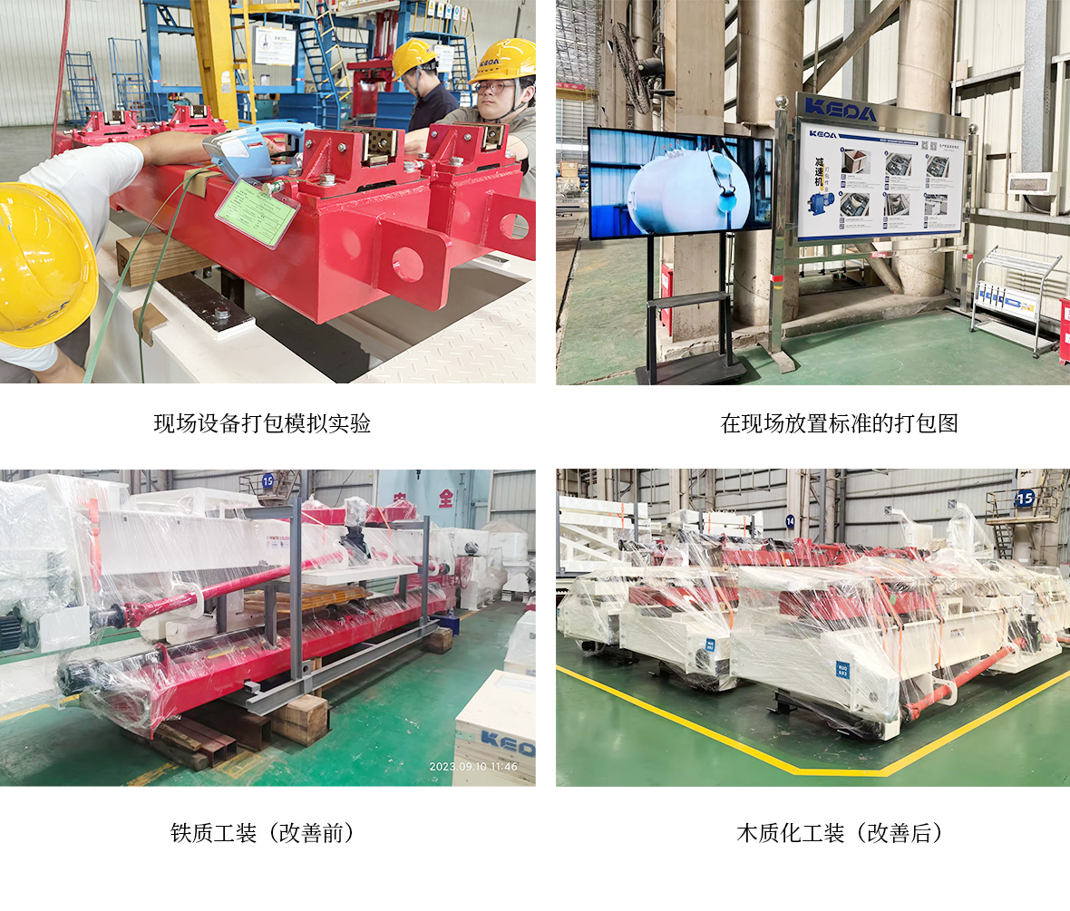為提高海外打包效率及包裝產(chǎn)品質(zhì)量,在2024年9月,安徽科達(dá)機(jī)電生產(chǎn)供應(yīng)中心正式成立“海外打包專項(xiàng)組”,定向?qū)嵤└纳坪M獯虬ぷ鞯纳?jí)優(yōu)化,將原有的鐵質(zhì)工裝為基礎(chǔ)逐步轉(zhuǎn)為木質(zhì)化打包,最終在2024年12月完成既定的目標(biāo),即設(shè)備打包木質(zhì)化、木箱標(biāo)識(shí)完善、設(shè)備打包標(biāo)準(zhǔn)制定、發(fā)貨清單標(biāo)準(zhǔn)、打包標(biāo)識(shí)規(guī)范等。經(jīng)測(cè)算,整線打包效率比原來提高30%,成本減少1.6元/整線(稅前)。