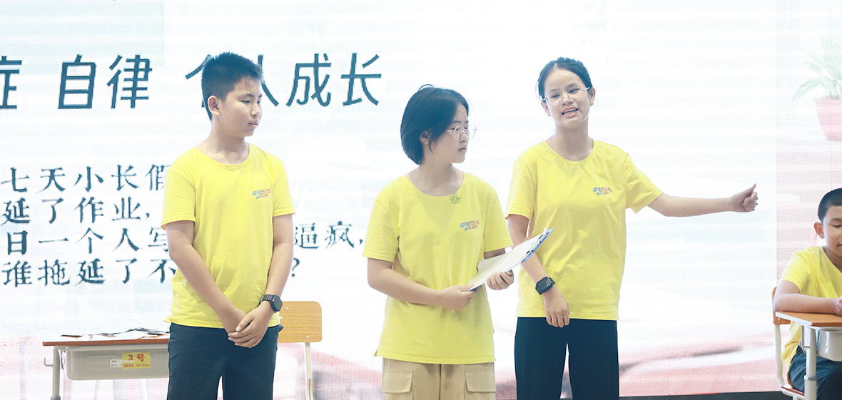 結(jié)營儀式的舞臺上,小學(xué)A班和小學(xué)B班的孩子們分別帶來了《我相信》和《紀念》合唱表演,用歌聲展現(xiàn)了天真無邪、活潑開朗同時又對生活充滿憧憬熱愛的新生代風(fēng)貌。話劇表演《瘋狂的星期日》向全體營員傳遞了日常學(xué)習(xí)中養(yǎng)成自律、專注、不拖延等良好習(xí)慣的重要性。臺下的老師與家長們紛紛拿起手機,記錄下孩子們自信閃耀的動人時刻。