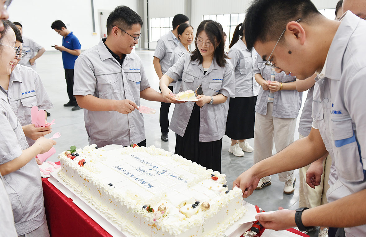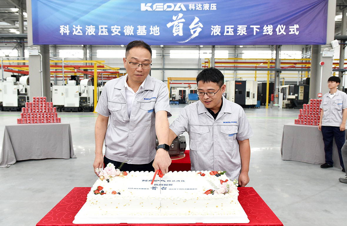 隨后,在全場矚目下,科達(dá)液壓總經(jīng)理陳孝輝和常務(wù)副總經(jīng)理劉正富共同為首臺(tái)液壓泵揭幕。此次下線的K4V200液壓泵是科達(dá)液壓廣受市場歡迎的產(chǎn)品。該產(chǎn)品凝結(jié)了研發(fā)技術(shù)團(tuán)隊(duì)的智慧與汗水,從設(shè)計(jì)到生產(chǎn)全流程彰顯了科達(dá)液壓“精益求精”的匠心精神,是公司核心研發(fā)與制造實(shí)力的集中體現(xiàn)。儀式最后,陳總和劉總與全體員工共同分享象征著成功與喜悅的蛋糕,期望科達(dá)液壓的未來更加甜蜜與美好。
